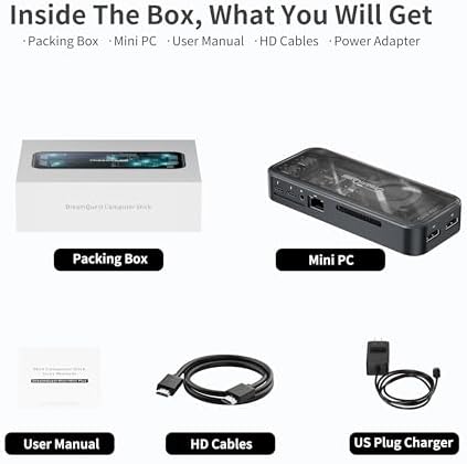 【Portable computer with dual multi-function USB port】Besides functioning as a traditional PC, this mini PC is equipped with two full-featured USB-C ports for easy connection to portable displays and projectors, and its compact, lightweight design makes it highly portable.