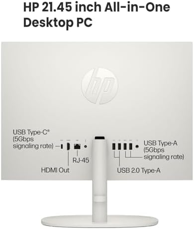 HP 2022 All-in-One Desktop, 21.5″ FHD Display, Intel Celeron J4025 Processor, 8GB RAM, 256GB PCIe SSD, Webcam, WiFi, HDMI, RJ-45, Wired Keyboard&Mouse, Windows 11 Home, White