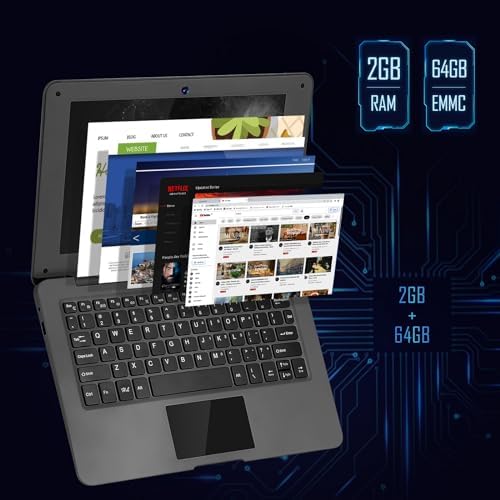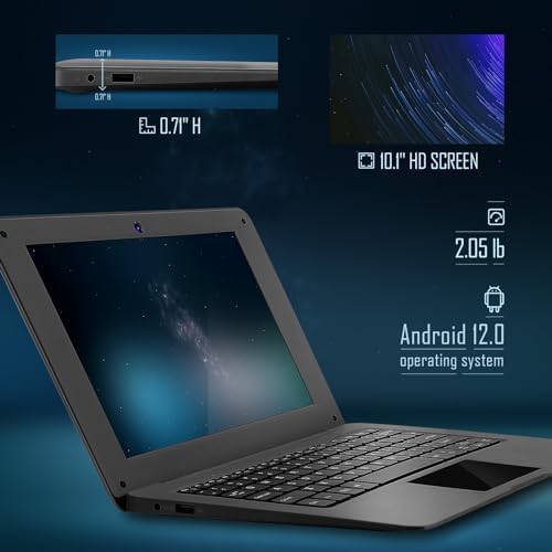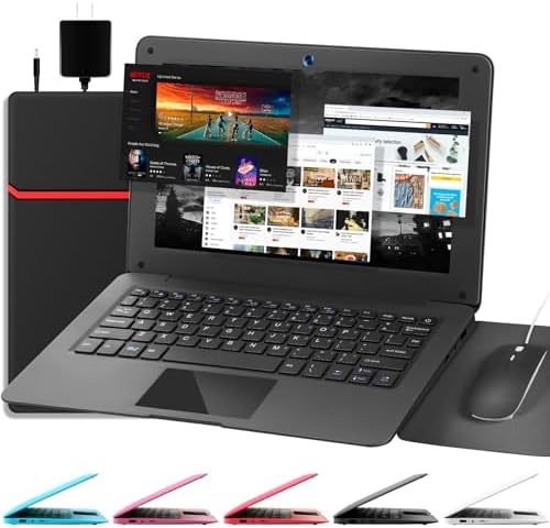 Laptop Computer(10.1 inch), Quad Core Powered by Android 12.0, Netbook Computer with WiFi, Webcam and Bluetooth, Mini Laptop with Bag, Mouse, and Mouse Pad for Kids and Adults(Black)