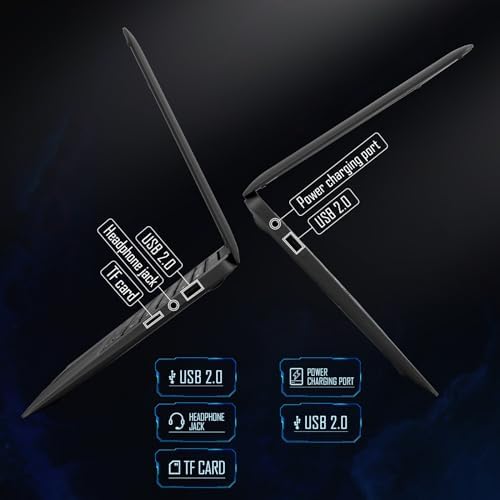 【Connectivity for Productivity】: Laptop is equipped with a variety of ports, including USB 2.0 ports, USB 2.0 ports, TF slots that can also be used as storage expansion, 3.5mm jack ports, and 3.5mm DC power sockets. Make your work more efficient.