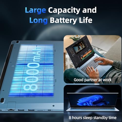 Reliable Long-Lasting Power: Take this laptop anywhere without carrying a power adapter. Its 7000mAh battery supports up to 8 hours of continuous use, providing flexibility for work or entertainment on the go. The dual cooling fans ensure quiet, efficient heat dissipation, maintaining sustained performance and minimizing distractions whether you’re working on spreadsheets or watching movies